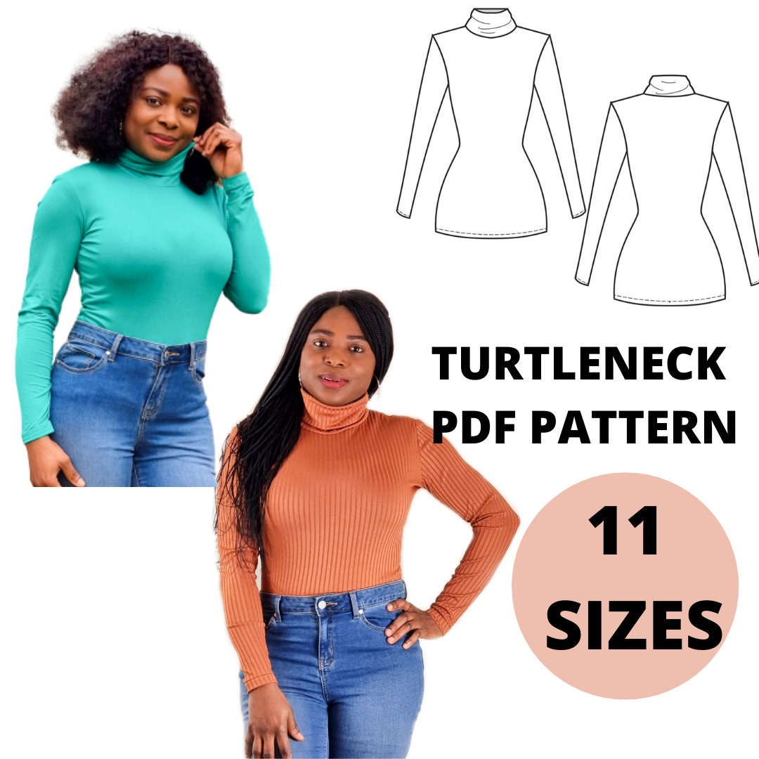 Turtleneck Top Pdf Sewing Pattern Turtleneck Knitting Etsy